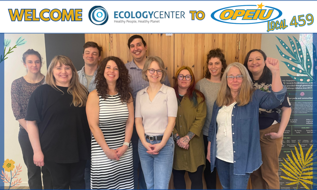 Ecology Center staff have elected to join OPEIU Local 459! This group consists of leaders in the fight for environmental sustainability. We are proud to welcome them as members and partner with them in the important work they do. You can learn more about how to get involved by signing up to receive email updates from the Center https://www.ecocenter.org/sign-email